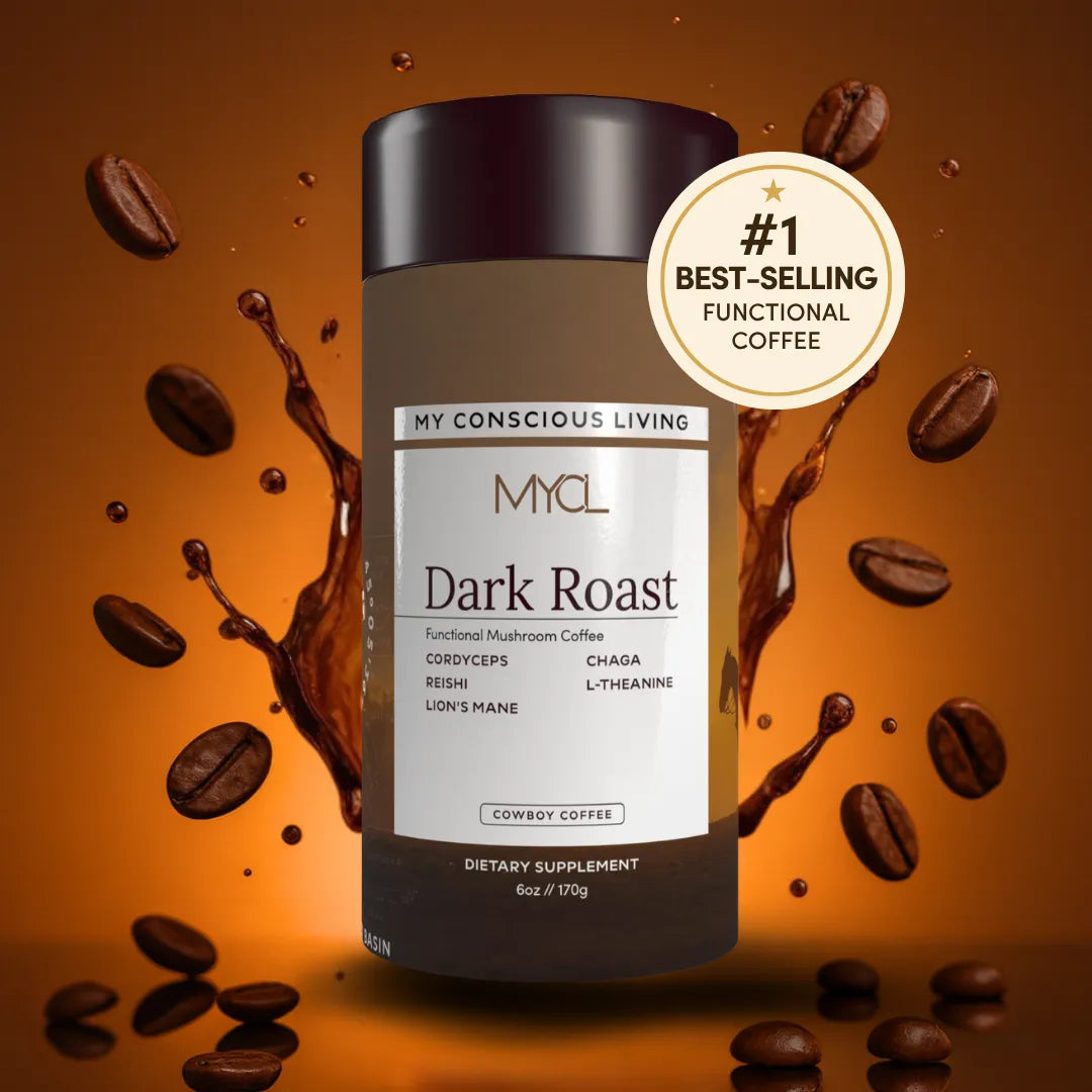 As the first light stretches across the vast Wyoming frontier, the bold aroma of dark coffee rises with it, a timeless ritual of resilience and strength. MYCL’s Dark Roast Cowboy Coffee embodies the rugged beauty of the West—bold, unwavering, and deeply grounding. Each sip is a moment of strength and simplicity, like the calm before the world stirs. Infused with Reishi, Lion’s Mane, Cordyceps, and Chaga mushrooms, along with L-Theanine, this brew fuels mental clarity, resilience, and sustained energy without the crash. These powerhouse mushrooms work together to support focus, endurance, and overall well-being, creating a cup that’s as functional as it is bold.