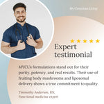 We use the fruiting body of the Cordyceps mushroom in our extract, as it is rich in beneficial compounds like antioxidants and beta-glucans, offering greater potency compared to mycelium-based products.